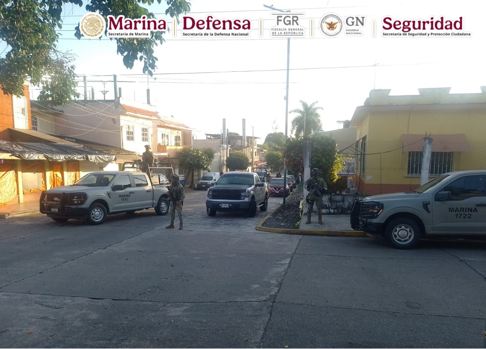 Veracruz, Ver. - La Secretaría de Marina encabezó un operativo conjunto en el que se cumplimentaron tres órdenes de cateo en inmuebles vinculados a una célula delictiva dedicada a extorsiones, privaciones ilegales de la libertad y robos con violencia.