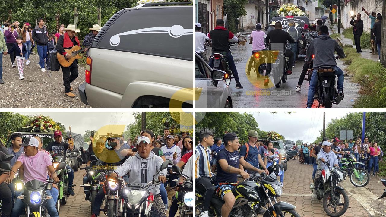 Con la música del grupo Centella norteña y la canción de “Los Dos Amigos” que cantaron los motociclistas amigos de Pablo, el cortejo fúnebre del joven migrante muerto en un tráiler en San Antonio Texas, recorrió las calles de Tlapacoyan.