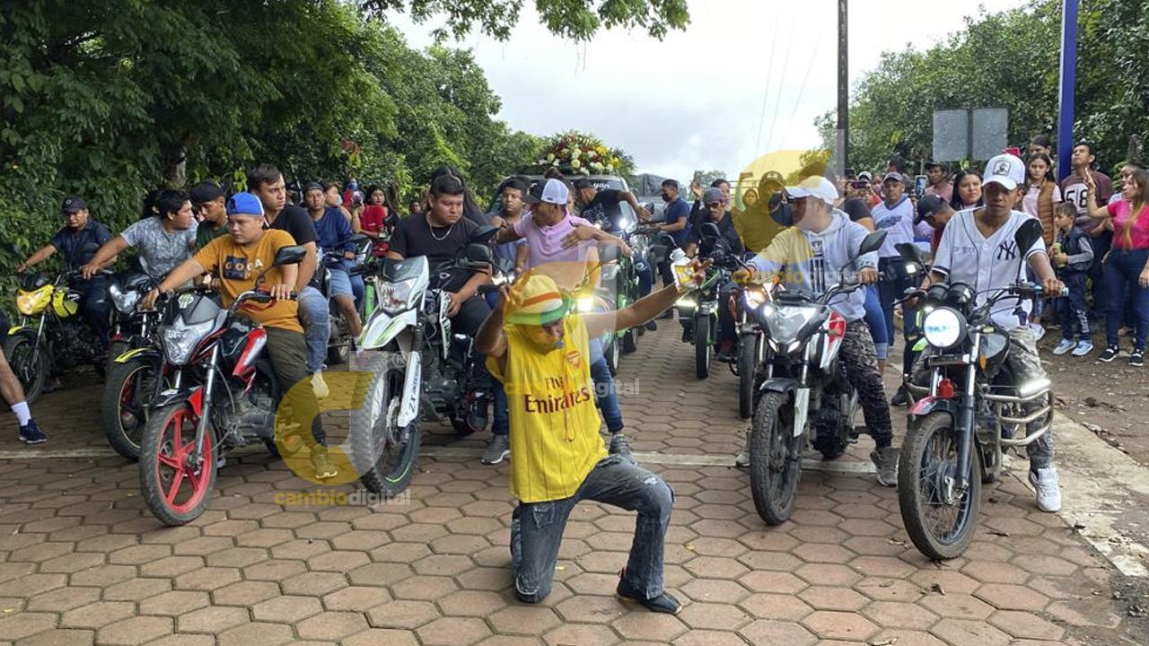 El rugir de los motores de las motocicletas de los amigos del joven, cumplió con lo que Pablo había pedido si fallecía, ser paseado por el pueblo con música norteña, una caravana de motos y alcohol. Y así fue.