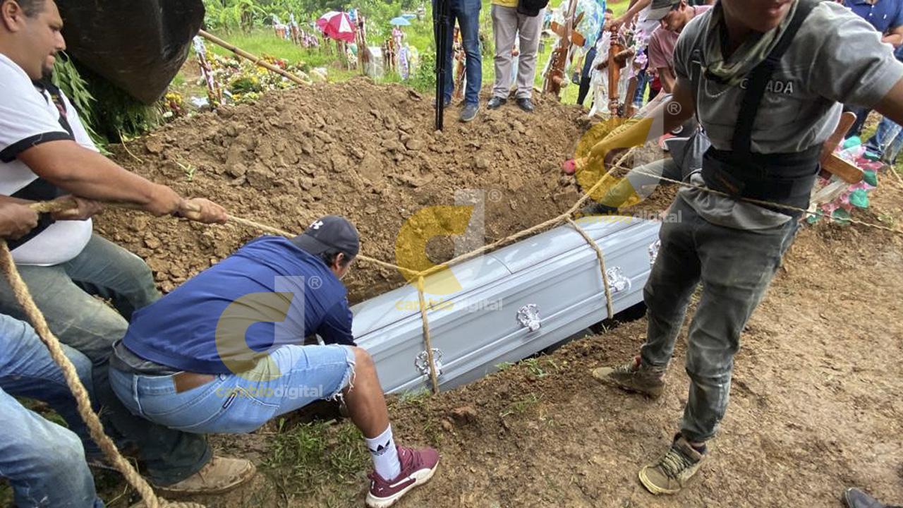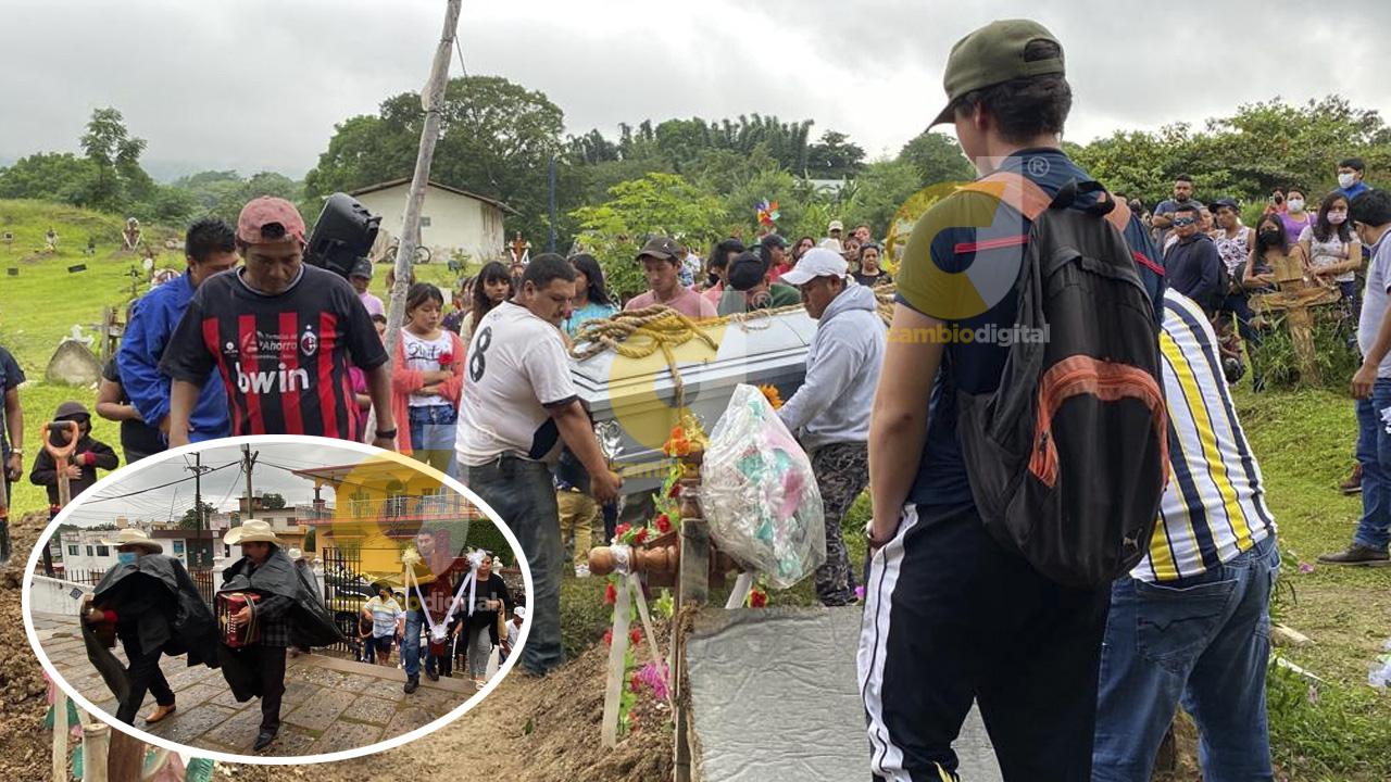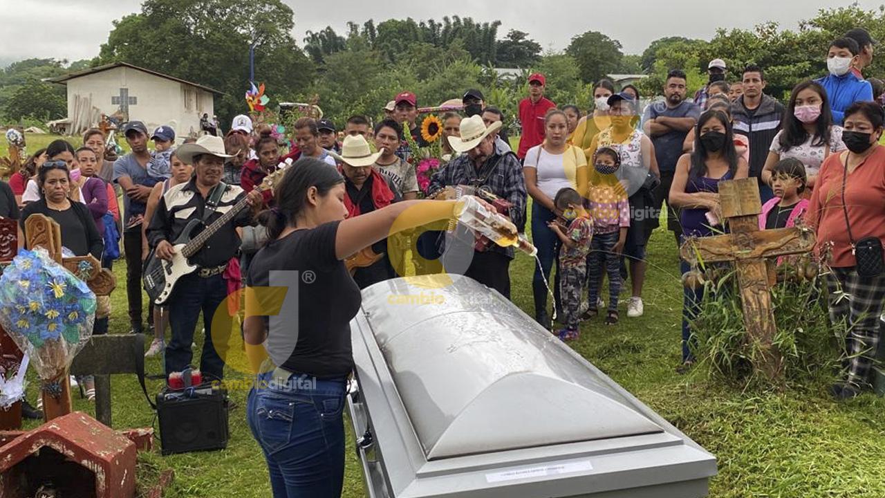 Tras la misa de cuerpo presente en la iglesia de El Cerrito, el cuerpo del joven de 20 años que se fue a trabajar para tener dinero para su futuro hijo, fue sepultado en el panteón municipal Santa Cruz de Tlapacoyan.