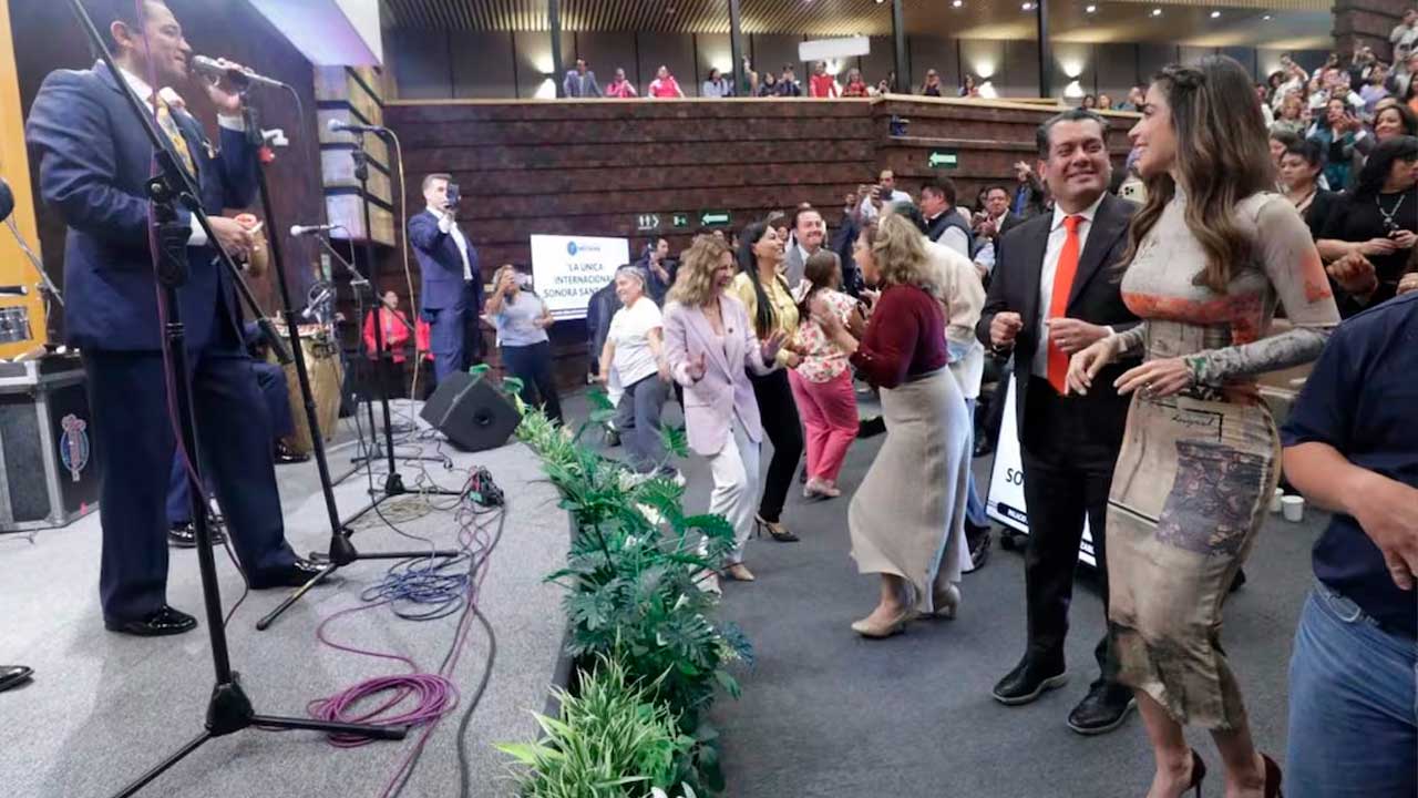 Tras lo cual, la agrupación se presentó en el auditorio "Aurora Jiménez" de San Lázaro, en donde se captó que varios legisladores abandonaron el pleno y fueron a bailar.