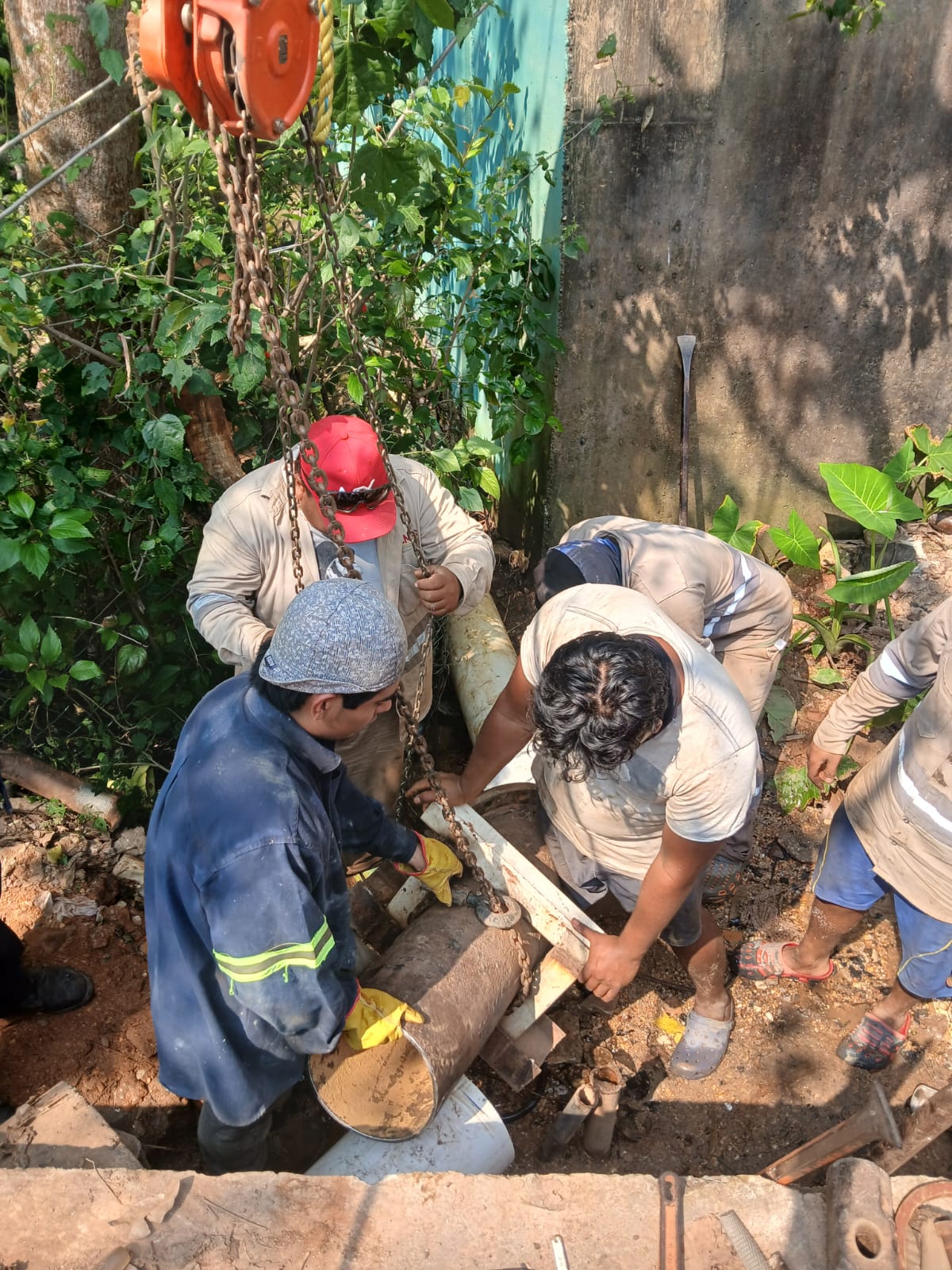 Coatzacoalcos, Ver.- Luego de varios días de intensas labores por parte del personal operativo de la Comisión Municipal de Agua Potable y Saneamiento (CMAS), se ha concluido con éxito la reparación de la línea de 10 pulgadas del Pozo 15, ubicado en la zona de Canticas.