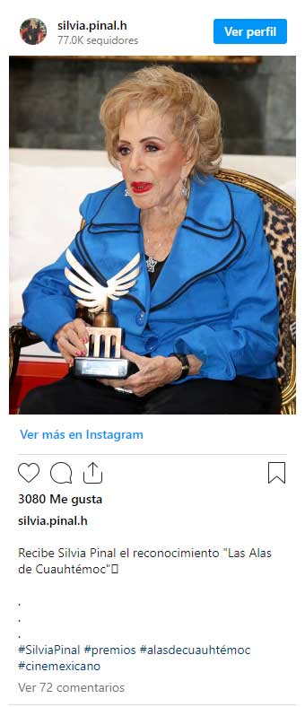 Además, el médico señaló que Silvia Pinal ha respondido muy bien al tratamiento, aunque aún la actriz debe realizar una terapia respiratoria, la cual deberá seguir realizando en su casa cuando sea dada de alta.
