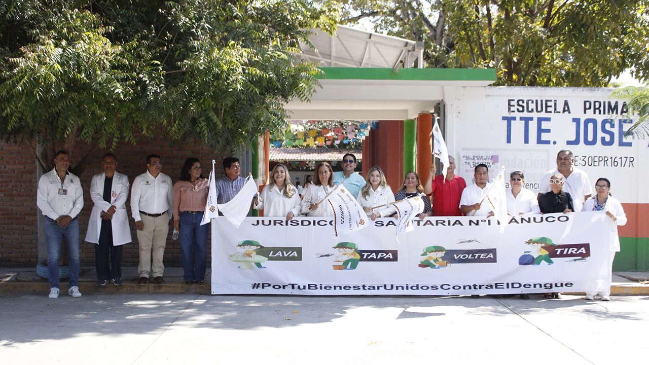 Pánuco, Ver. – En un evento celebrado en las instalaciones de la escuela primaria José Azueta, las autoridades municipales encabezadas por la síndica única Maritza González Ortiz en representación de la alcaldesa Mayra Anel Delgado Castillo acompañaron al personal de salud de la jurisdicción sanitaria número 01 de Pánuco al banderazo de inicio de la jornada en la lucha contra el Chikunguya y el dengue ante alumnos y personal docentes.