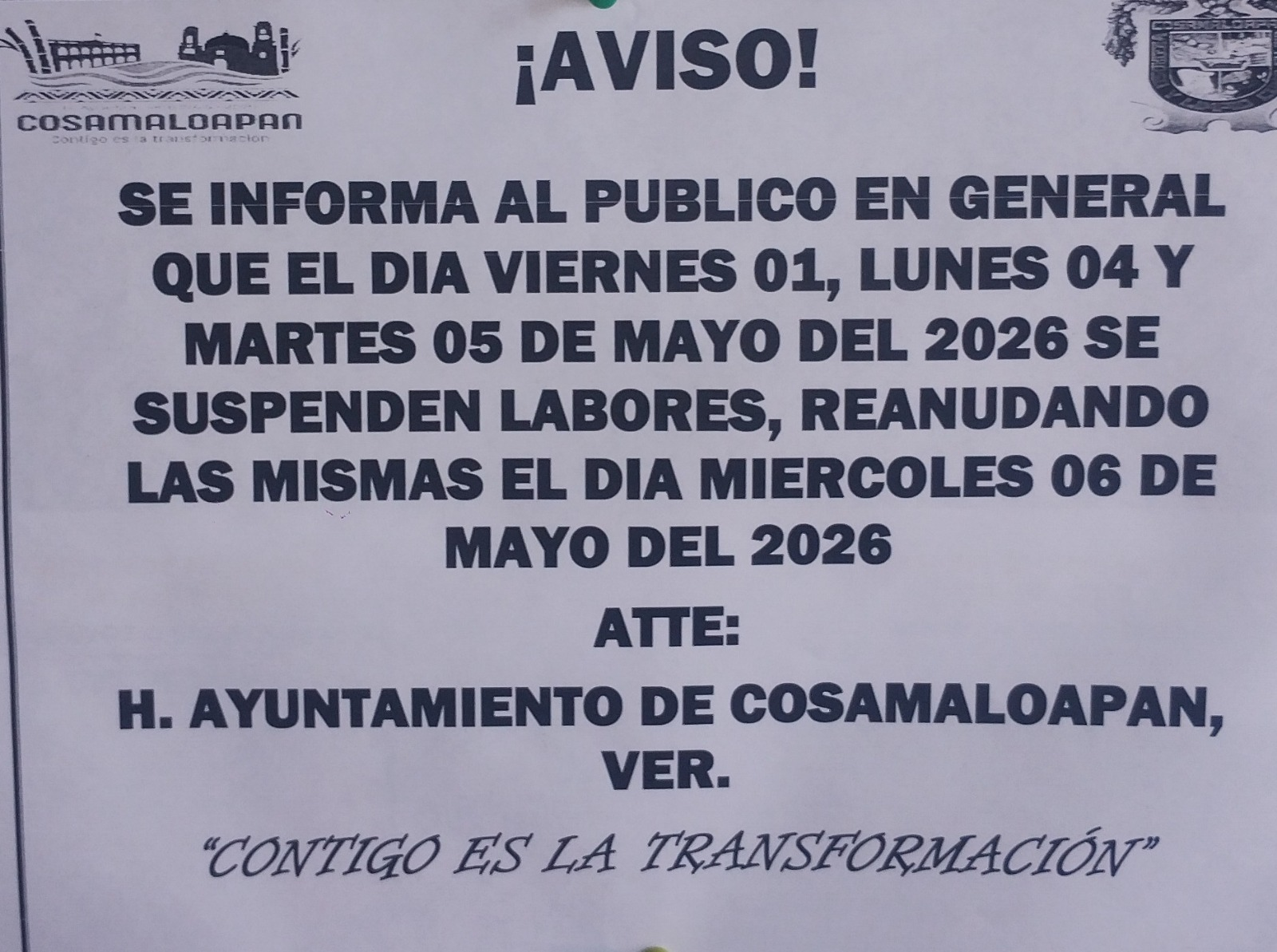Se agregan locatarios del mercado “Lorenzo Gómez”, así como los gremios de taxistas, mientras que la fecha del primero de mayo marca el inicio de un gran “puente” vacacional para los trabajadores sindicalizados y de confianza, del municipio de Cosamaloapan, que concluye hasta el siguiente martes 5, por aniversario de la batalla de Puebla.