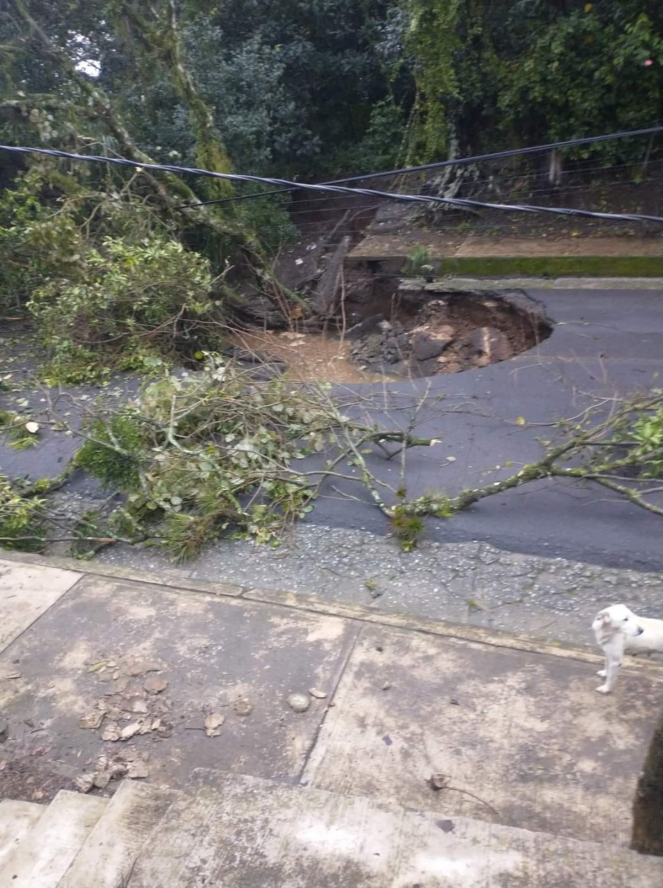 Veracruz, Ver.- Las lluvias intensas que se registran en la mayor parte de Veracruz, provocaron un socavón que cerró el paso vehicular en la carretera de Orizaba a Santa Ana Atzacan.