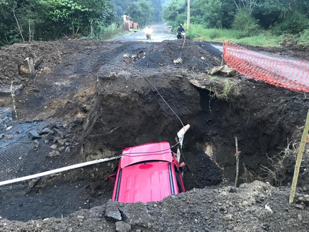 Si bien el socavón ya había sido reportado cuando comenzaba a formarse, los trabajos de relleno que se realizaron no sirvieron de nada, pues el mismo se formó, pero mucho más grande, abarcando casi todo el ancho de la carpeta asfáltica.