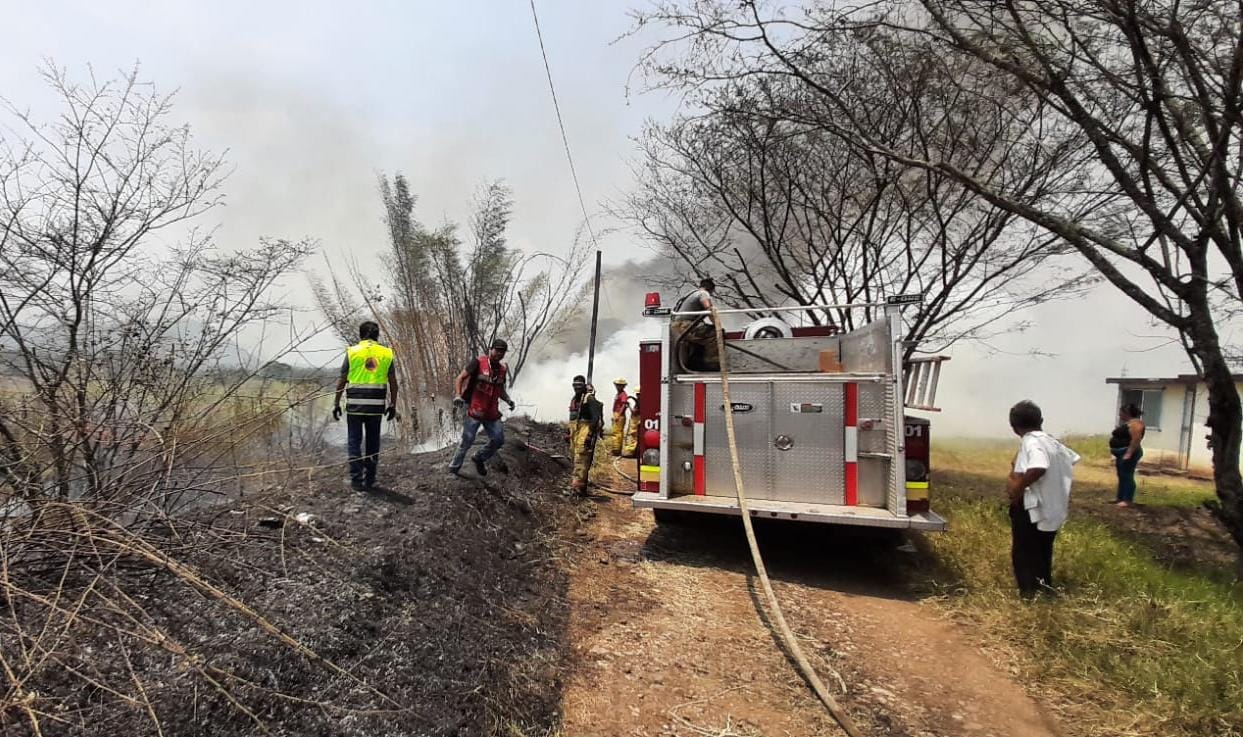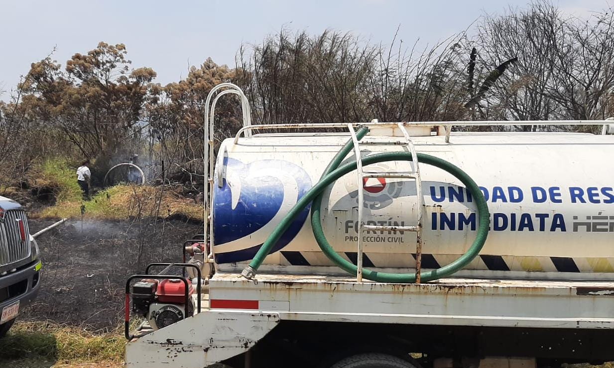 Fortín, Ver. - Elementos de Protección Civil municipal al mando del coordinador Guillermo Domínguez Rangel, sofocaron un incendio de pastizal arrasó con dos hectáreas y media en la colonia San José en la parte trasera de un corralón de autobuses.