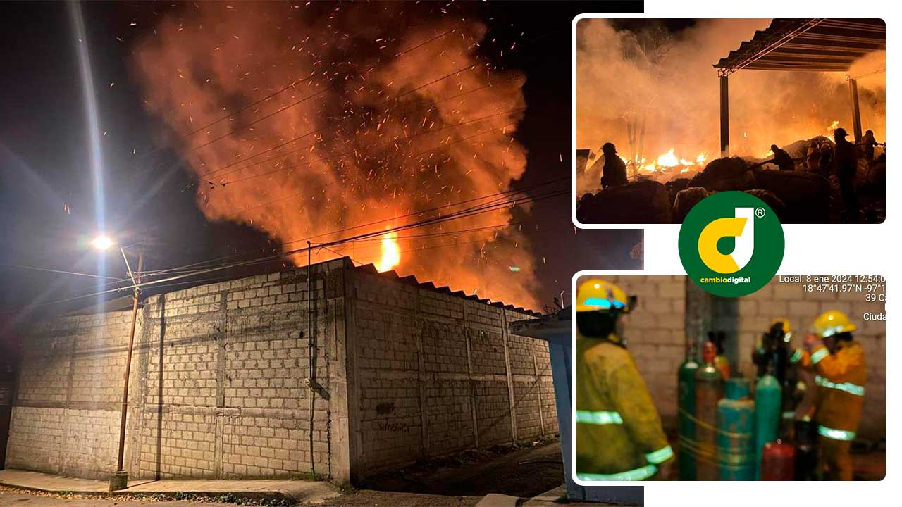 Nogales, Ver.- Poco después de la una de la madrugada de este lunes concluyeron las labores de atención al incendio que inició anoche en una bodega de reciclaje de materiales en el municipio de Nogales que movilizó a los bomberos de tres municipios.