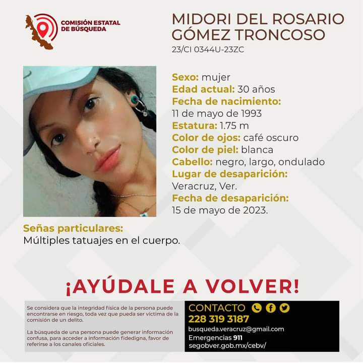El pasado 15 de mayo por la mañana, Midori salió de la casa de su mamá en el fraccionamiento Los Volcanes del municipio de Veracruz, rumbo al trabajo, y aunque dijo que regresaría al día siguiente esto no ocurrió.