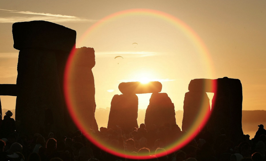 En Stonehenge, Inglaterra se reúnen miles de personas para celebrar el día de inicio del solsticio alrededor de este monumento británico. Los visitantes acuden a contemplar el amanecer en el centro del círculo de piedras, para contemplar la salida del sol sobre la Piedra del Talón.