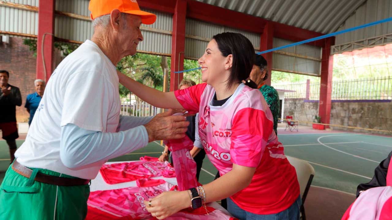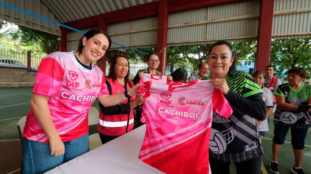 Coatzacoalcos, Ver.- Este miércoles la presidenta del DIF Coatzacoalcos, Sonia Marie, visitó el Centro de Día del Adulto Mayor (CAM) para cumplir la promesa hecha a los integrantes de los equipos femenil y varonil de cachibol: entregar los uniformes deportivos que habían solicitado.
