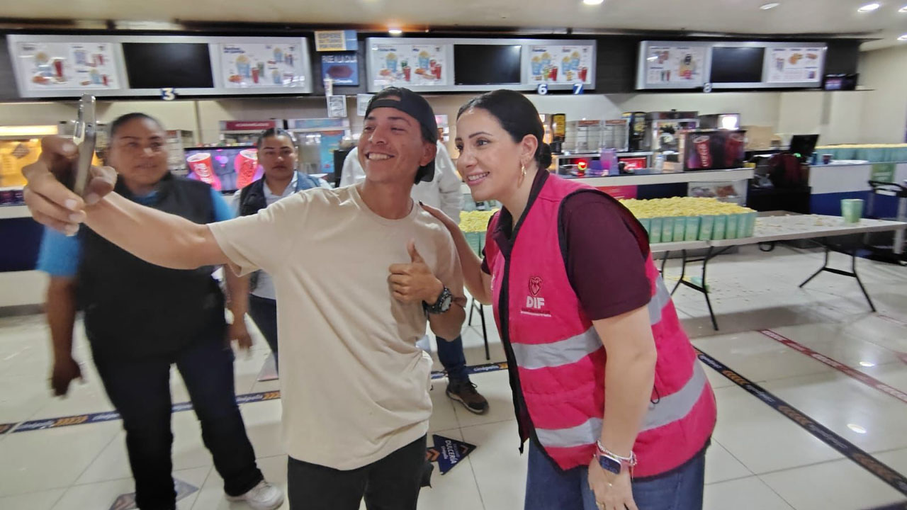 La presidenta del DIF Municipal, Sonia Marie Salvador Goraieb, acompañó a las y los menores durante la función de la película “Bob Esponja”, y compartió momentos de diversión con los asistentes, quienes vivieron una mañana de recreación e inclusión.