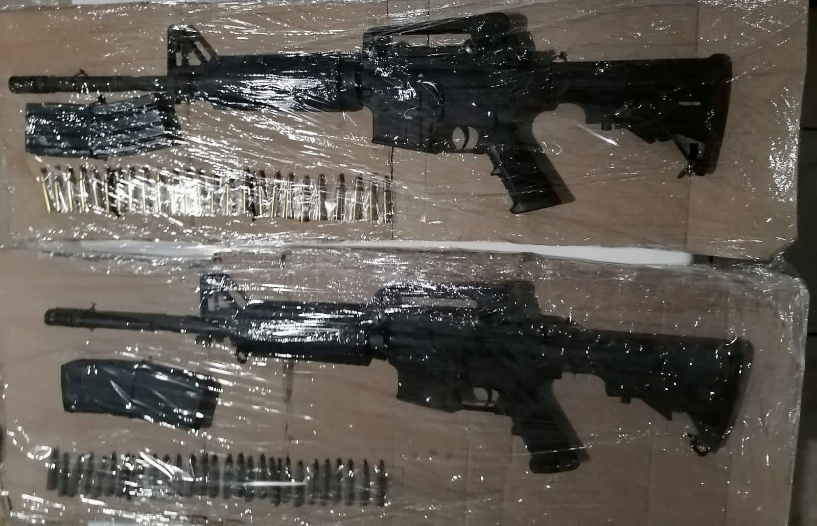 Al realizarles una inspección a las unidades, fueron halladas dos armas largas, dos armas cortas, cartuchos útiles calibres .223 y 45mm, 110 dosis de cristal y 58 de marihuana.