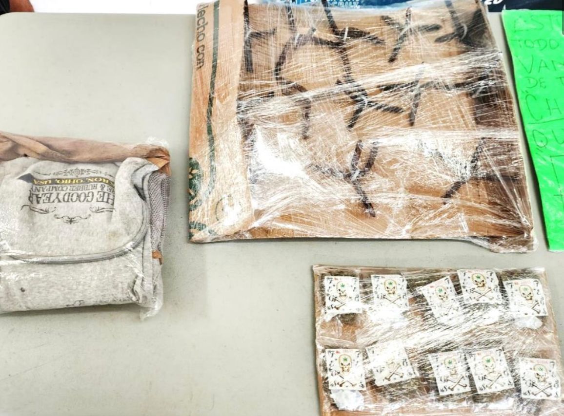 Ante ello, los elementos se resguardaron y a través de comandos verbales y la superioridad de fuerza y capacidad de fuego, orillaron al agresor a rendirse, siendo intervenido. Al realizarle una inspección precautoria tanto a la unidad como al sujeto, que se identificó como José Cristian “N”, le fueron aseguradas diversas dosis de enervantes rotuladas con las iniciales de un grupo delictivo, un arma de fuego, ponchallantas y cartulinas con mensajes de amenaza.