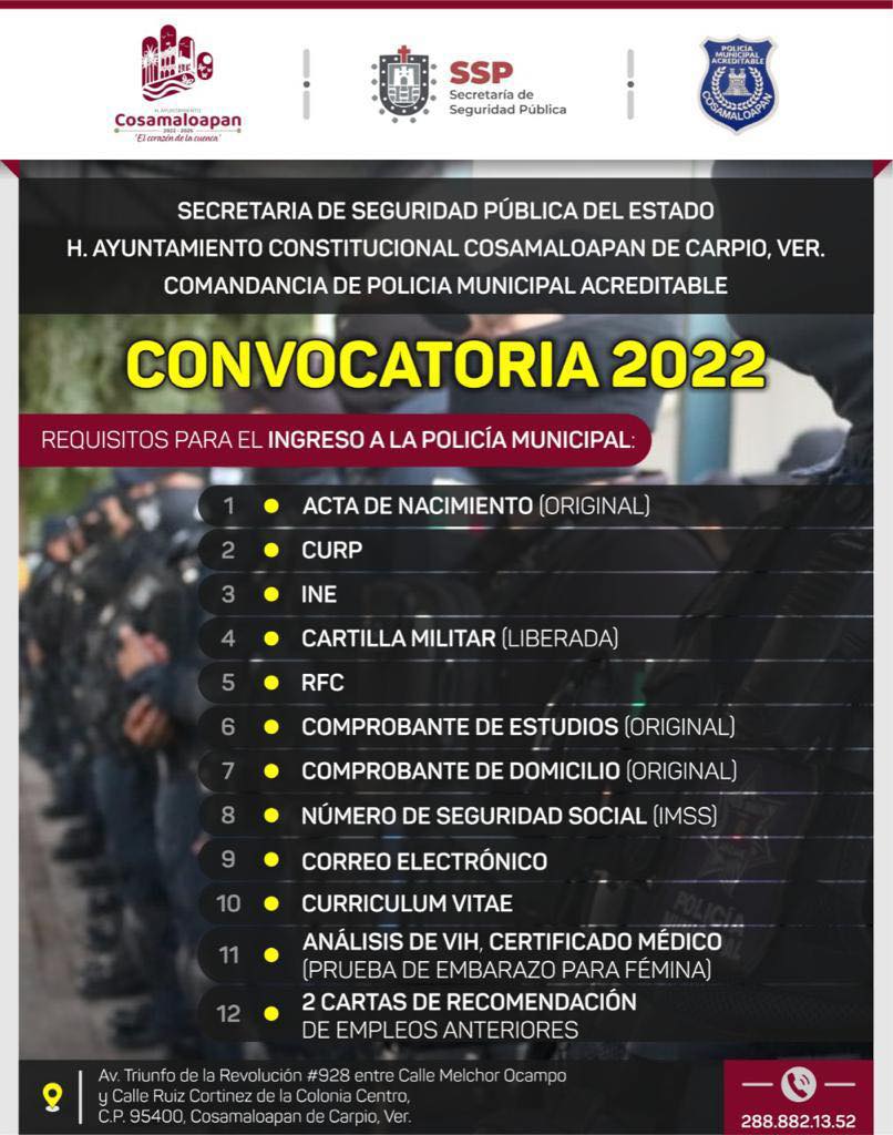 Cosamaloapan, Ver.- La Secretaria de Seguridad Publica del Estado y el H.Ayuntamiento Constitucional de Cosamaloapan de Carpio te invitan a unirte a la Policía municipal.
