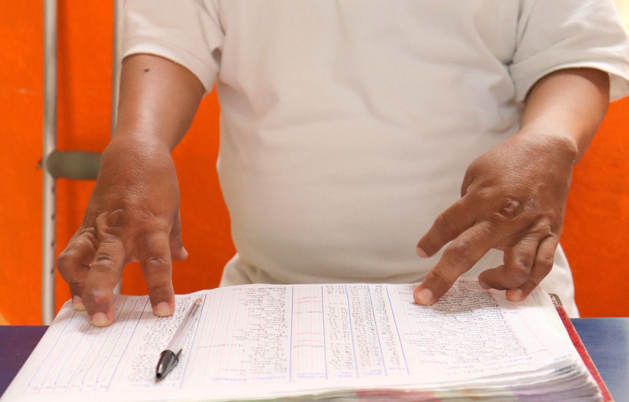 Esta enfermedad afecta directamente al revestimiento de las articulaciones, principalmente en sus manos y cadera donde tiene una prótesis de lado derecho, por esta razón camina con dificultad apoyándose con una muleta.