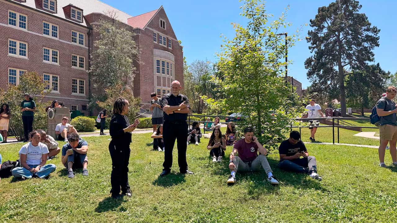 Después de unos 15 minutos de esconderse, la policía universitaria escoltó a los estudiantes fuera del centro estudiantil y vio a una persona recibiendo tratamiento de emergencia en el césped, manifestó.