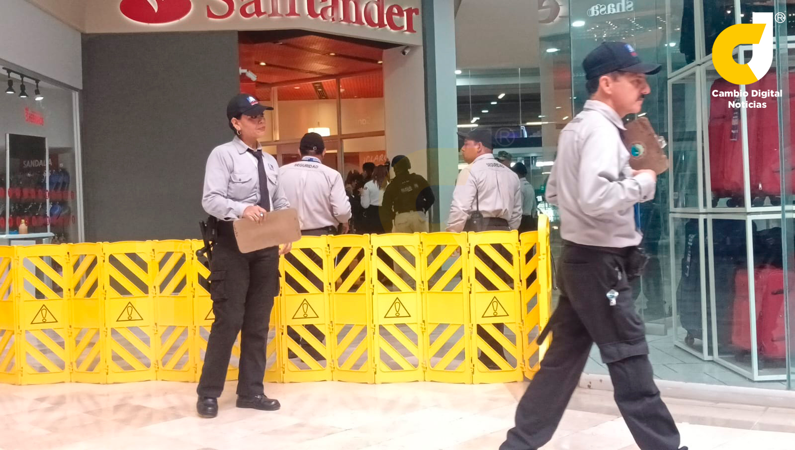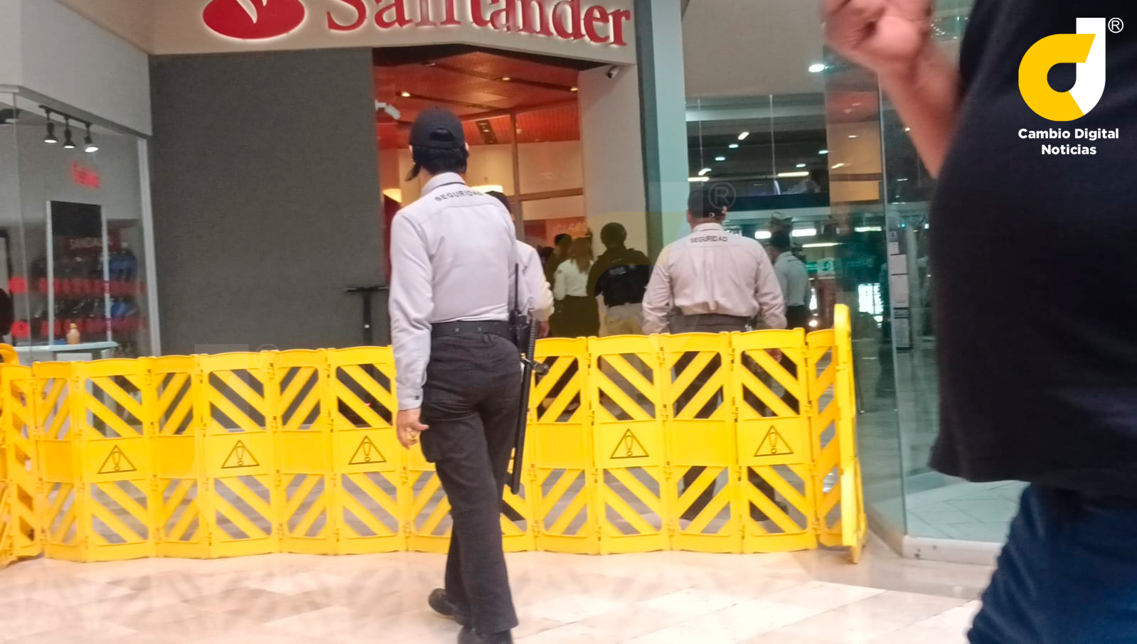 Boca del Río, Ver.- Un sujeto no identificado ingresó a la sucursal del banco Santander ubicada en Plaza Américas y se niega salir del banco, argumentando que presuntamente lo vienen persiguiendo.
