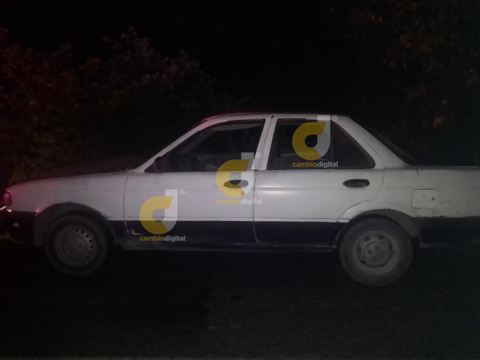 Siendo asegurado por los preventivos estatales un vehículo de la marca Nissan, Tsuru, color blanco con franjas negras sin placas de circulación el cual fue retirado con apoyo de una grúa y puesto a disposición de la Unidad Integral de Procuración de Justicia del octavo distrito judicial para deslindar responsabilidades.