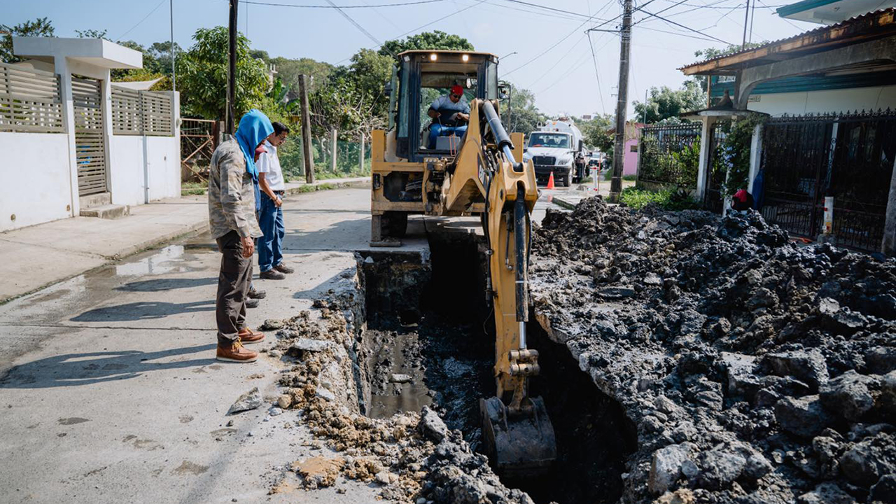 Tuxpan, Ver.- El alcalde de Tuxpan Daniel Cortina Martínez supervisó personalmente los trabajos que se realizan en el socavón de la calle 18 de Marzo, así como las labores de desazolve y reparación de fugas, con el objetivo de atender de manera directa una problemática que afecta a las familias de la zona.