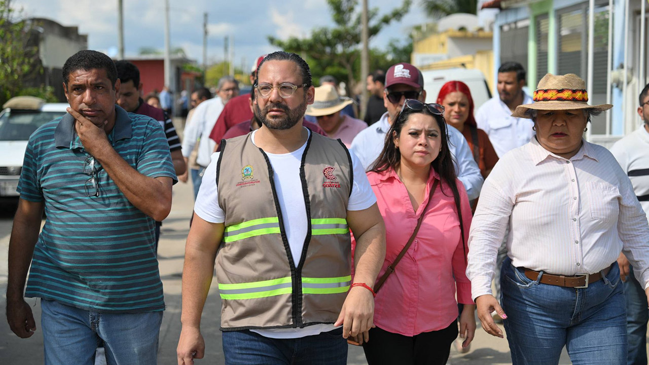 El alcalde de Coatzacoalcos Pedro Miguel Rosaldo García expresa “recorriendo la colonia Ciudad Olmeca para verificar los trabajos de limpieza de Obras Públicas y Limpia Pública.