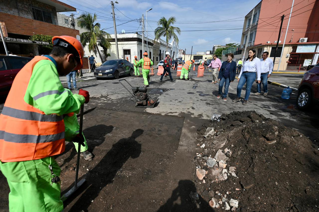 Supervisa alcaldesa de Veracruz trabajos del programa municipal de bacheo