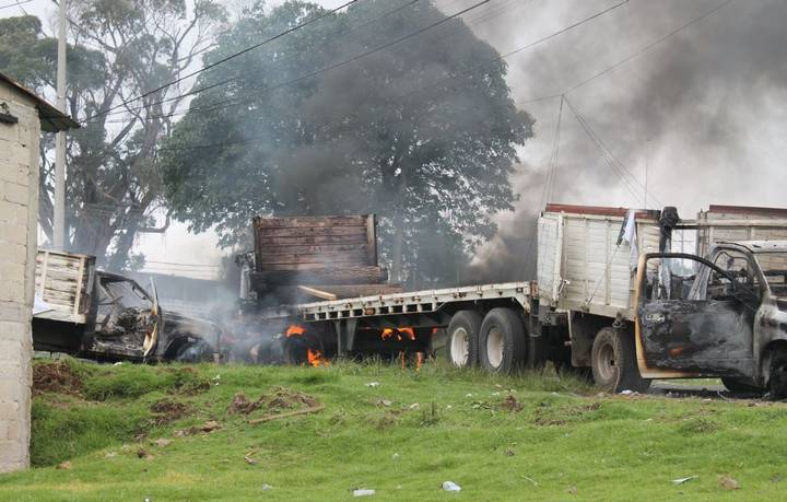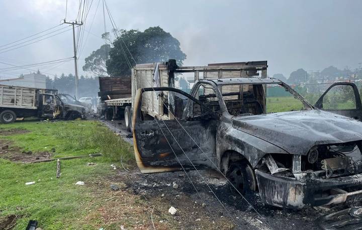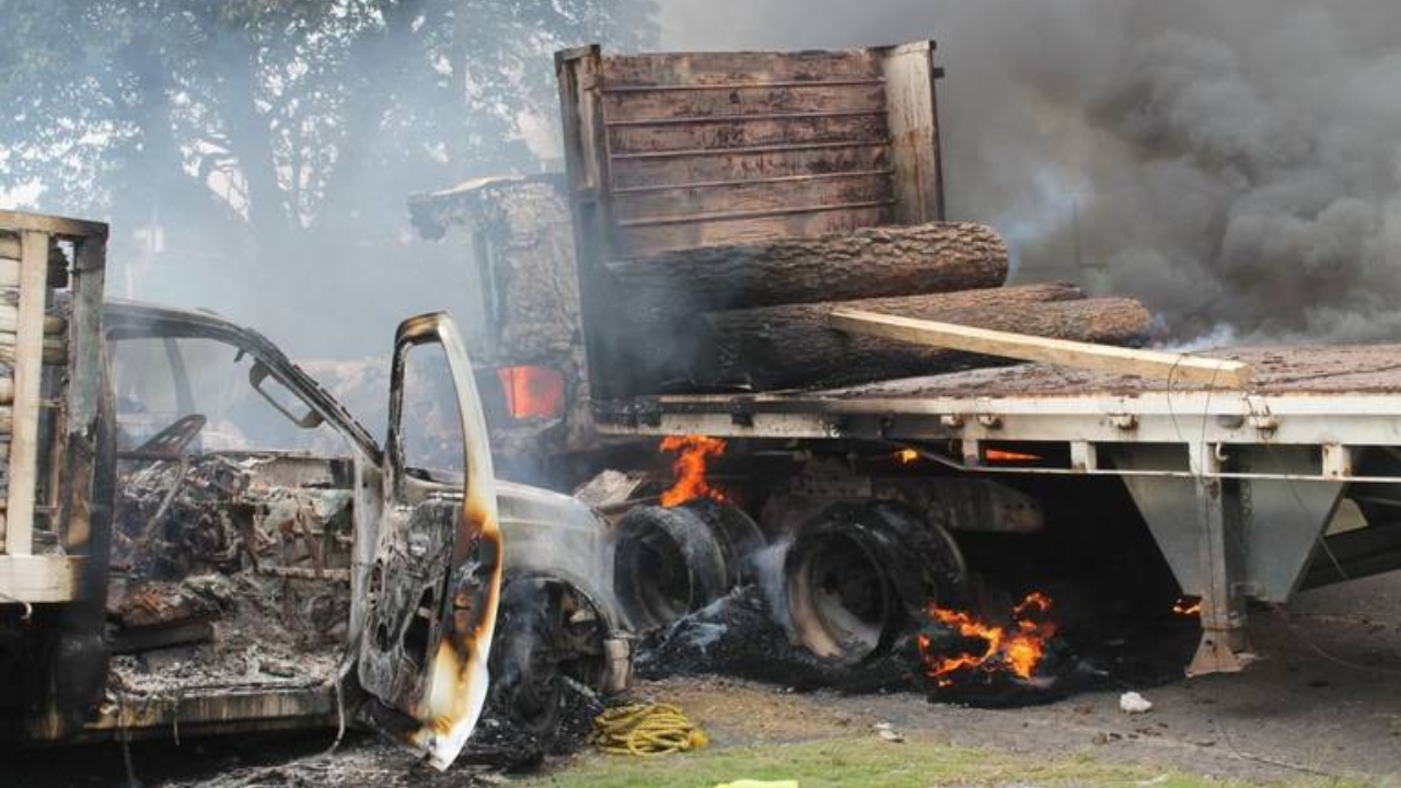 "A las 12: 30 horas se recibió el reporte de que en la zona conocida como el Alcanfor de la cabecera municipal se encontraban incendiados dos vehículos automotores, a fin de obstruir el desarrollo de un operativo implementado por la Sedena, Guardia Nacional, FGE, FGR y Profepa" tras el aseguramiento de aserraderos, explicó en un comunicado.