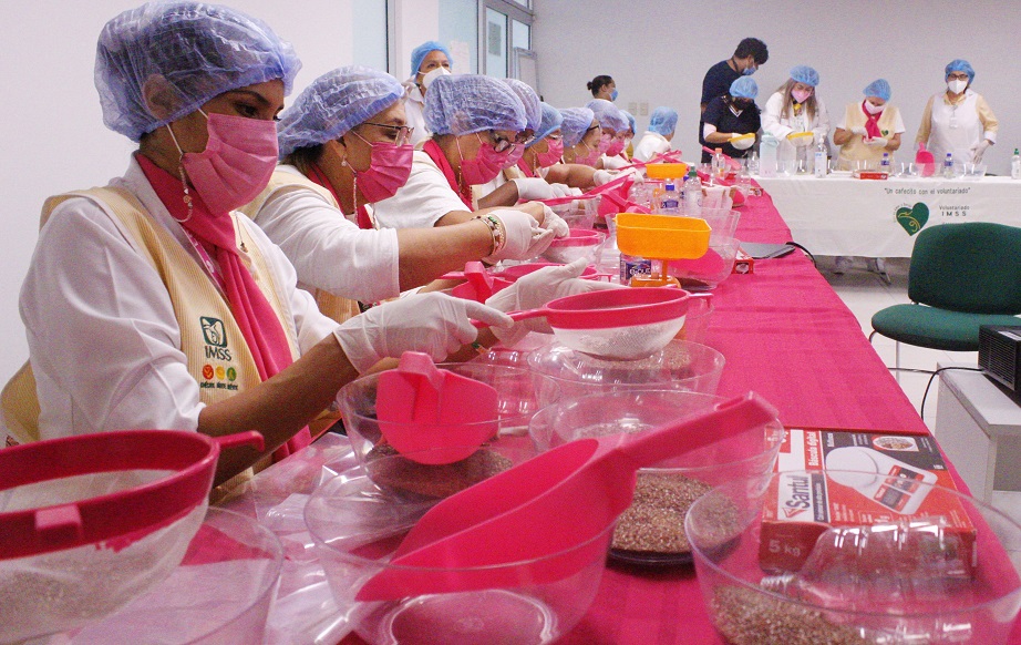 Asimismo, Nancy Vega Cruz, coordinadora del Programa Soy Rosa IMSS, mencionó que las prótesis son elaboradas con una funda de tela especial que dona una empresa de lencería, rellenas con semillas de linaza, pues esta semilla no guarda humedad, no genera olores, no germina y la cantidad depende del peso que se requiera según la talla de la paciente.