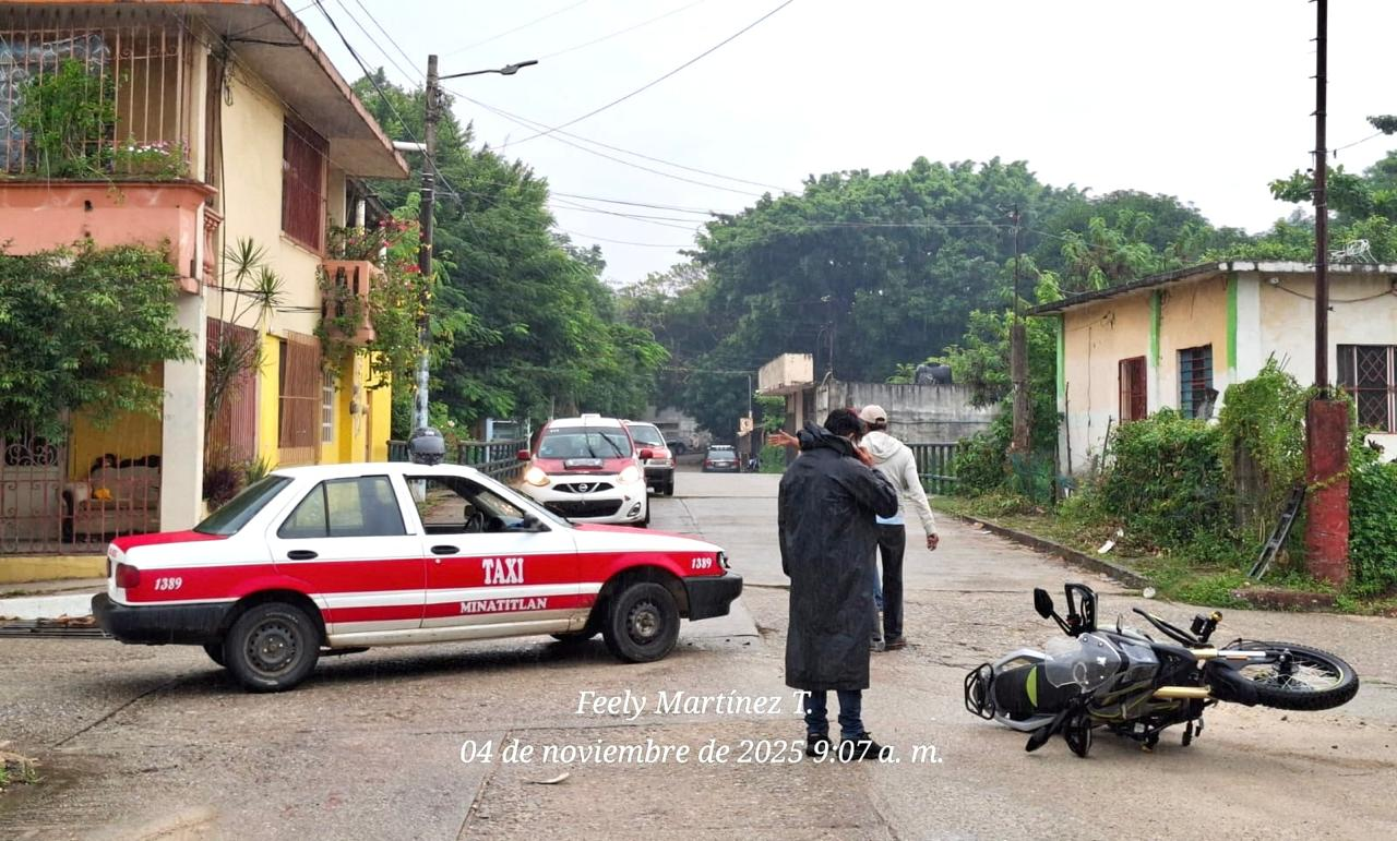Minatitlán, Ver. – Por no respetar la preferencia, un taxista impactó a un motociclista en el cruce de las calles Francisco Sarabia y Miguel Alemán de la colonia La Bomba, resultando con golpes el conductor de la moto.