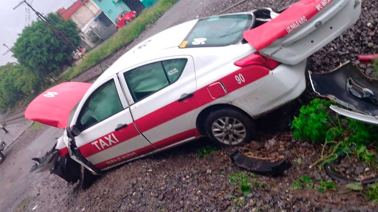 El taxi número económico 90 quedó a un lado de las vías y el operador con lesiones menores que no ameritaron hospitalización.