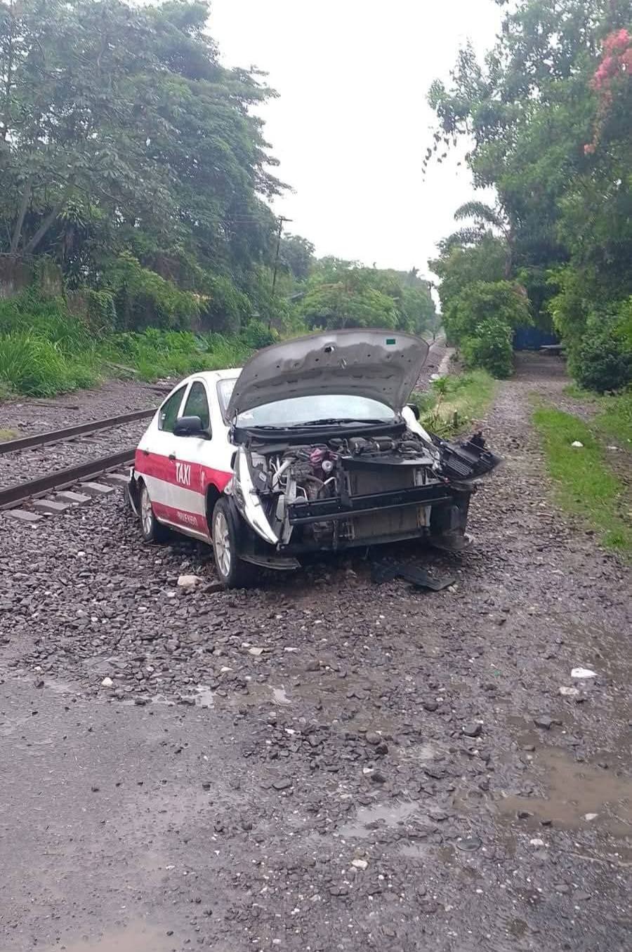 Veracruz.- Un taxista de la localidad de Paraje Nuevo del municipio de Amatlán de los Reyes intentó ganarle el paso al tren y acabó destrozando su unidad.