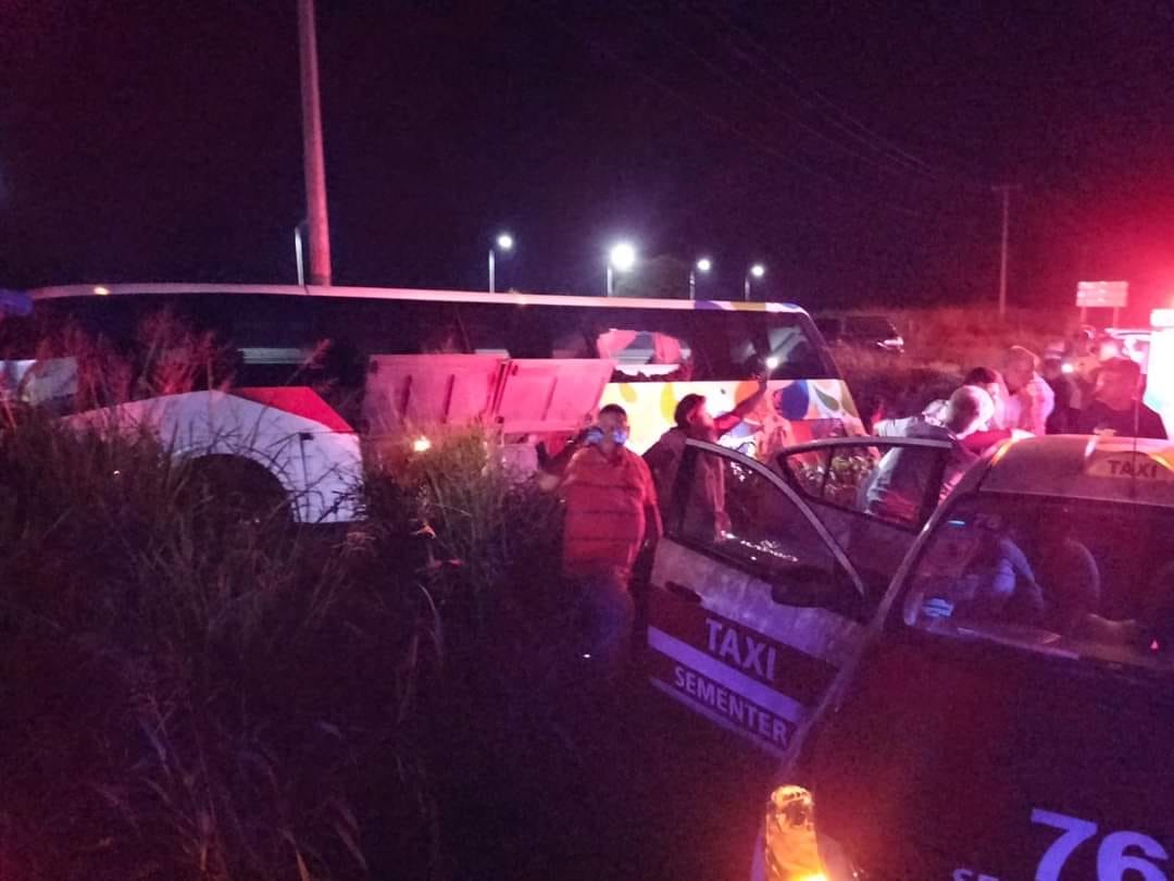 Al pasar cerca del autobús, el conductor Jorge “N” del TRV lo quiso esquivar, perdiendo el control y saliéndose de la carretera, terminando recostado en una cuneta procedente de la empresa de cítricos.