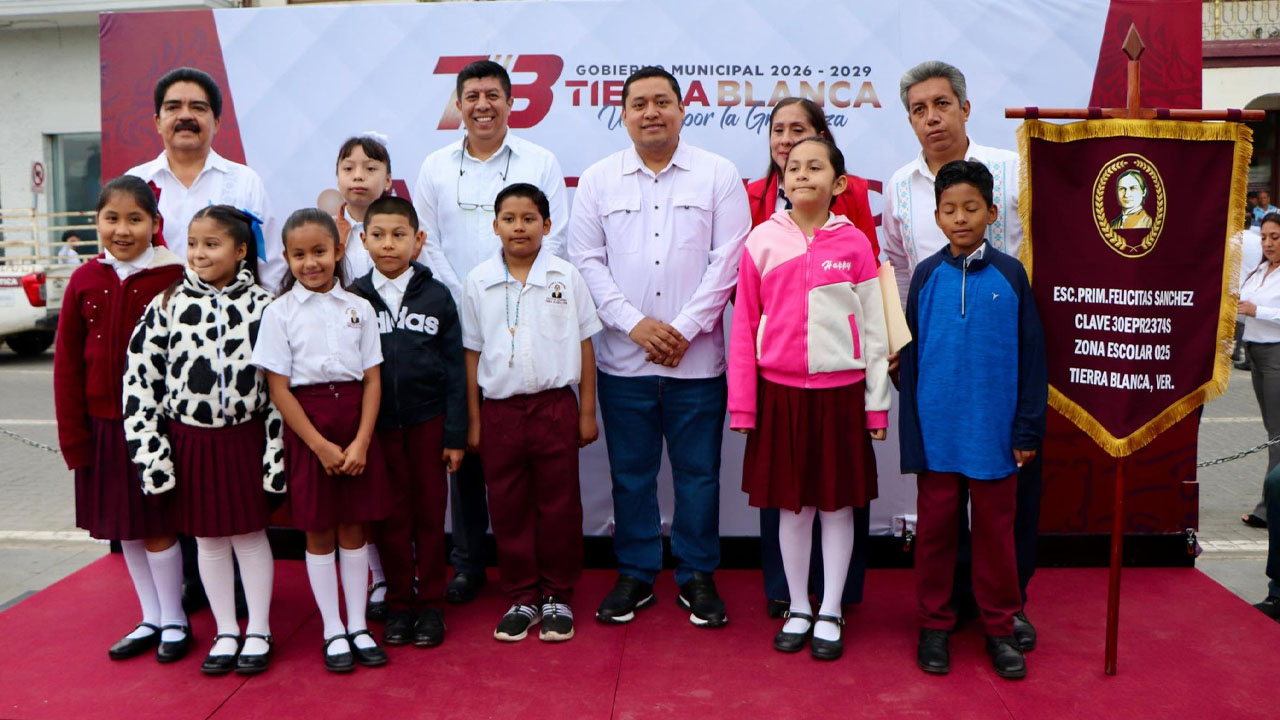 Tierra Blanca, Ver.- El Gobierno de Tierra Blanca, encabezado por el Lic. Eduardo González, llevó a cabo este lunes el acto cívico correspondiente en el Parque Juárez, contando con la valiosa participación de alumnas y alumnos de la Escuela Primaria Felícitas Sánchez, quienes contribuyeron al desarrollo de esta actividad cívica.