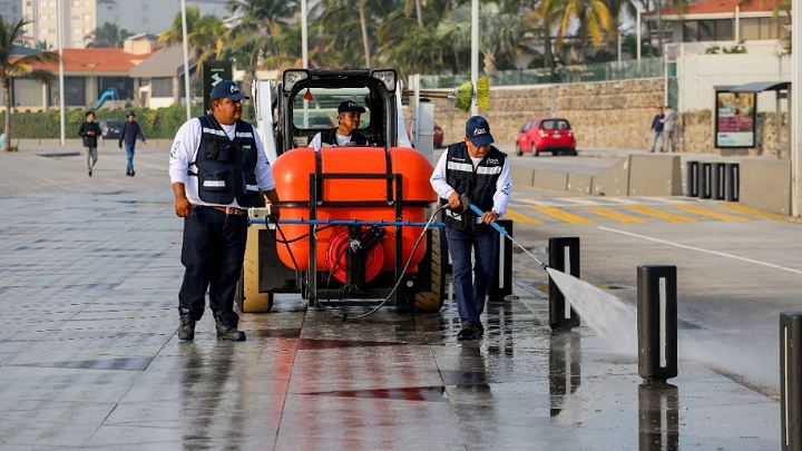 Unánue Abascal reconoció a todos los integrantes de la Dirección de Limpia Pública, quienes desde temprana hora se sumaron al operativo amanecer, para barrer y lavar las banquetas sin dejar de atender la zona turística independientemente de la recolección domiciliaria que continuó con normalidad.