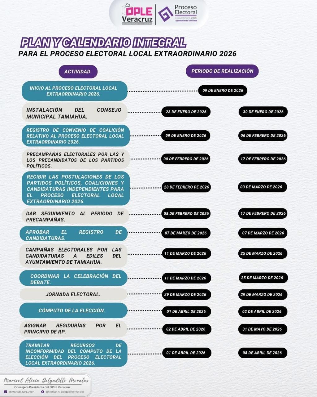 Tamiahua, Ver.- Del 28 de febrero al 3 de marzo se llevará a cabo el registro de candidaturas para las elecciones extraordinarias municipales que se celebrarán el 29 de marzo, informó la presidenta del Organismo Público Local Electoral (OPLE),Marisol Delgadillo Morales.