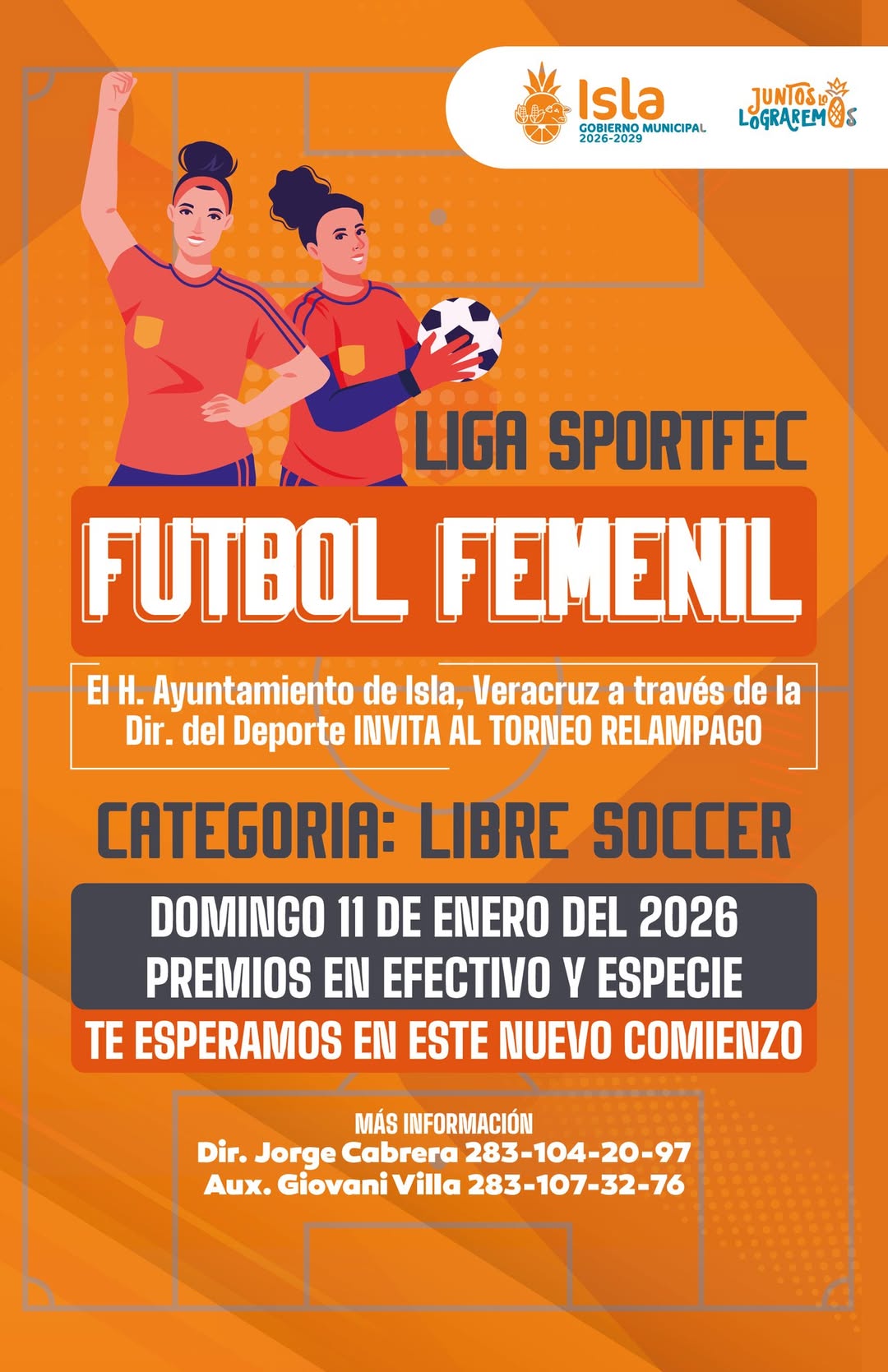 Isla, Ver.- El H. Ayuntamiento de Isla, Veracruz, que encabeza Ramón Martínez Tress, te invita a participar en el Torneo Relámpago Femenil, un espacio para impulsar el deporte, la sana convivencia y el talento de nuestras deportistas.