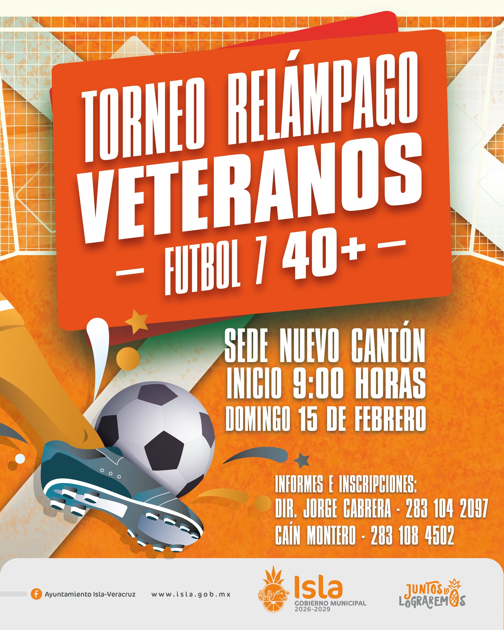 Isla, Ver.- ¡Se viene el Torneo Relámpago de Veteranos en la categoría Fútbol 7 | 40+! Una jornada donde la experiencia, la pasión y el amor por el fútbol se viven al máximo en cada jugada.