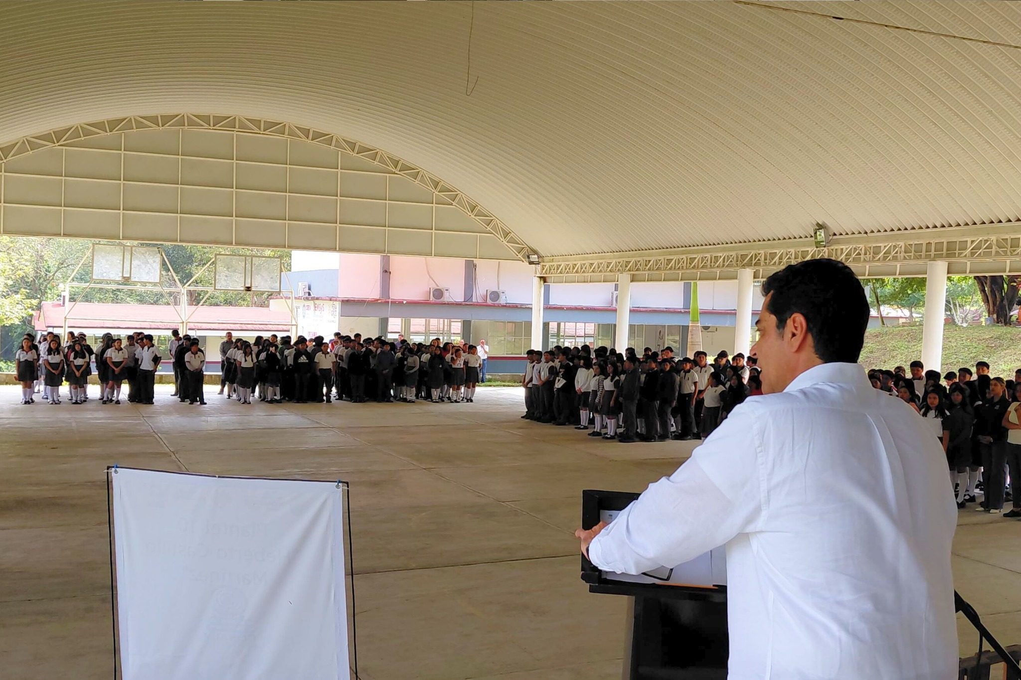 Durante su mensaje, felicitó a las y los jóvenes por el inicio de clases y los invitó a esforzarse, destacar y prepararse cada día, recordándoles que es a través de la educación como se pueden cumplir grandes sueños.