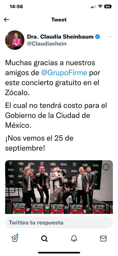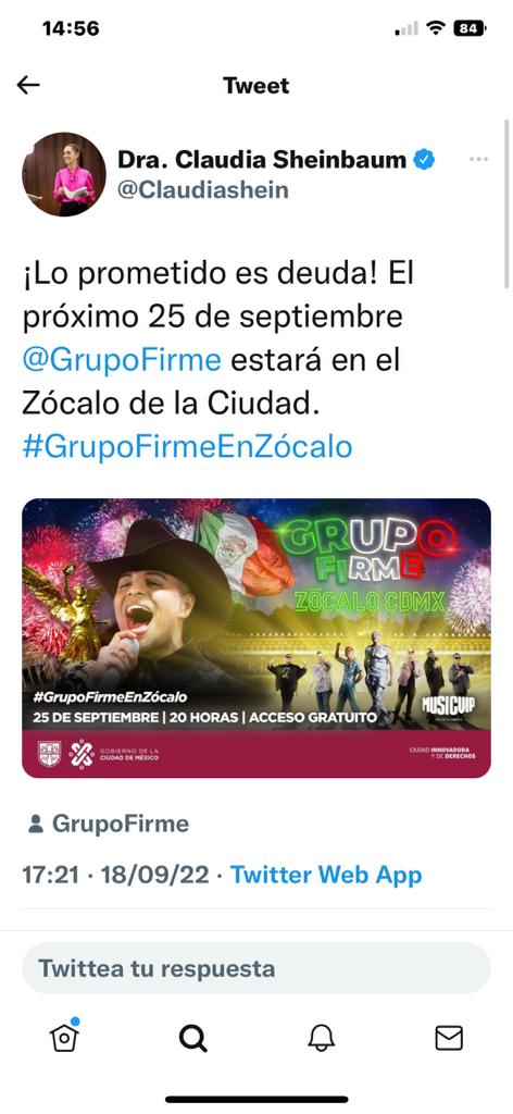 @GrupoFirme estará en el Zócalo de la Ciudad. #GrupoFirmeEnZócalo, escribió en un primer mensaje.
