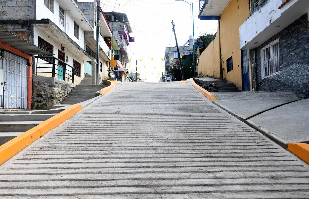 Se trata de una obra de más de 718 metros cuadrados de concreto hidráulico que incluye alumbrado público, escalinatas, guarniciones, banquetas, barandal y muros, todo ello en beneficio de más de 500 habitantes.