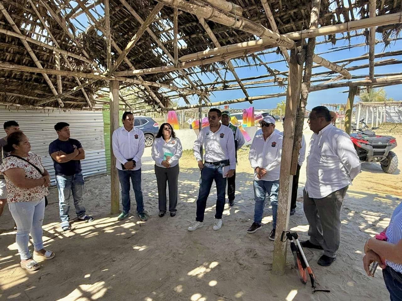 Tamiahua, Ver.- Realizan un recorrido de inspección en la zona de playa y posteriormente sostienen una reunión con las distintas áreas operativas del Ayuntamiento para coordinar acciones enfocadas en la reorganización y rehabilitación de los accesos.