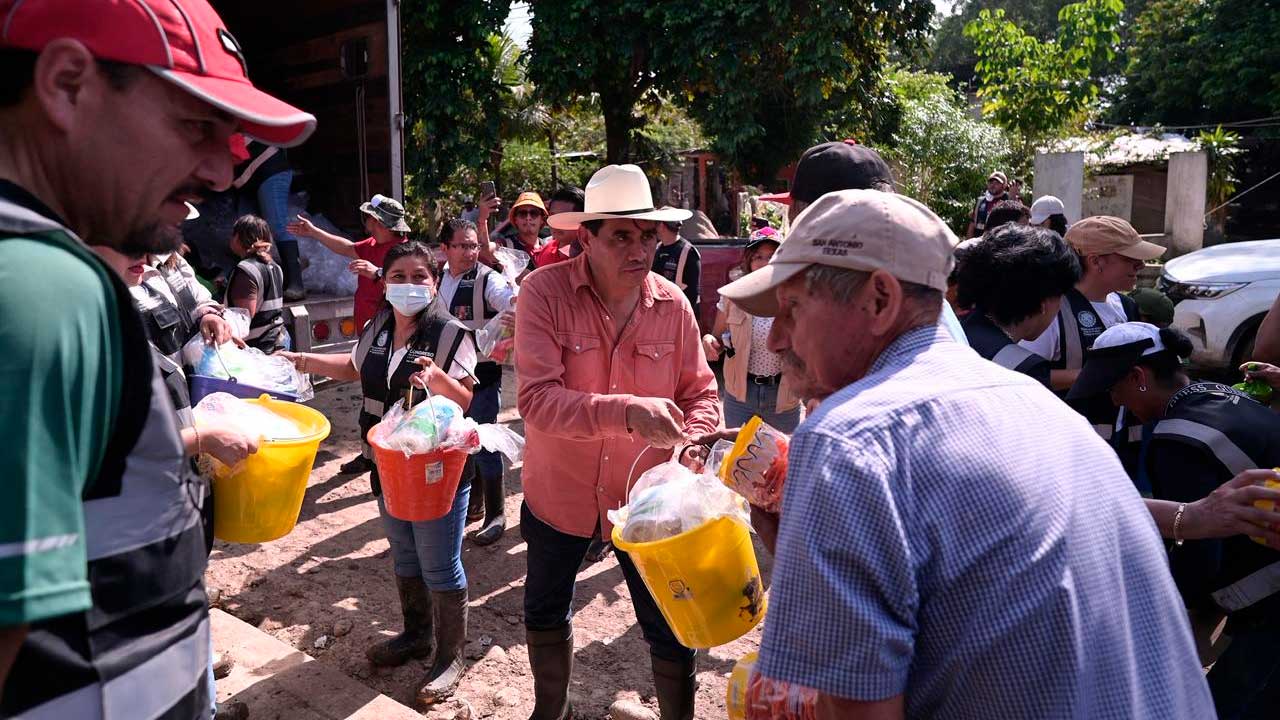 Al visitar la localidad de Estero del Ídolo y las colonias Heroica Veracruz, Barrio de las Flores, Jardín Viejo, así como las comunidades San Miguel, Raya Oscura, Zacatal y Santa Rosalía, y con la participación de la presidenta de la Mesa Directiva, diputada Naomi Edith Gómez Santos, y del coordinador del Grupo Legislativo del Partido Verde Ecologista de México (PVEM), diputado Carlos Marcelo Ruiz Sánchez, el legislador Bautista Hernández informó de la adquisición y entrega de 10 mil despensas, siete mil kits de limpieza y mil tinacos a las personas damnificadas, resultado del Acuerdo de las y los integrantes del Congreso local de donar un mes de salario.