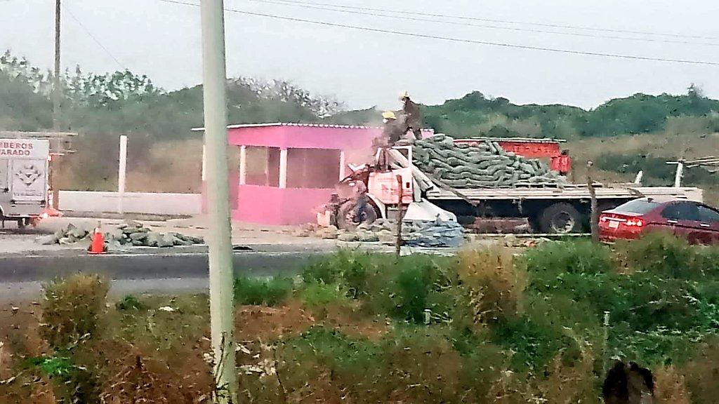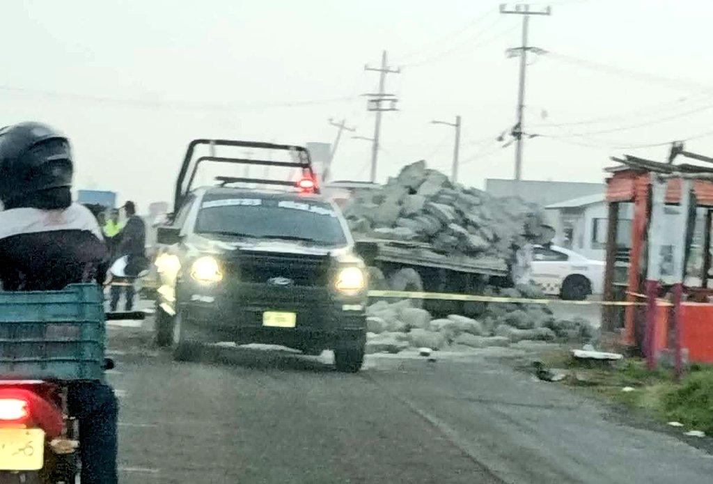 Alvarado, Ver.- Este viernes un tractocamión cargado de block chocó en la carretera federal 180 Costera del Golfo, a la altura de la comunidad de Camaronera, en el municipio de Alvarado.