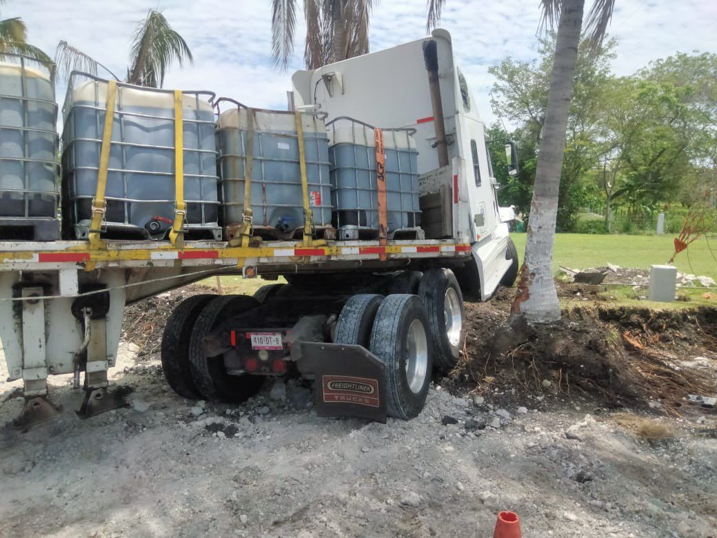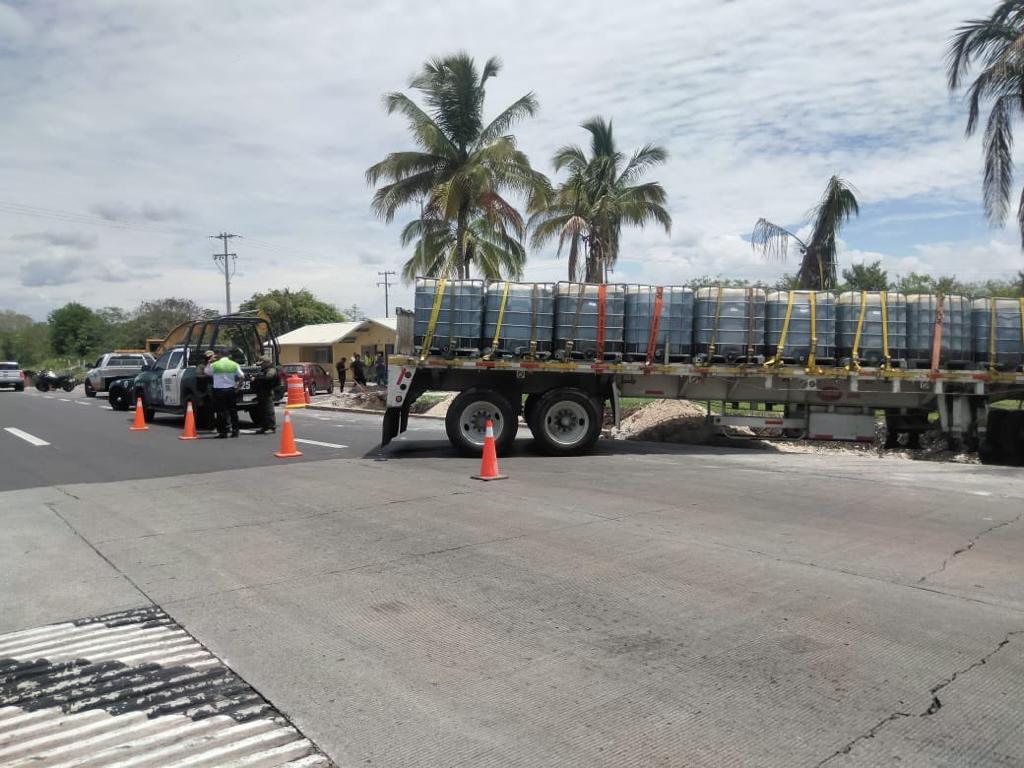 El tráiler quedó atravesado en la autopista, cerca de los baños.