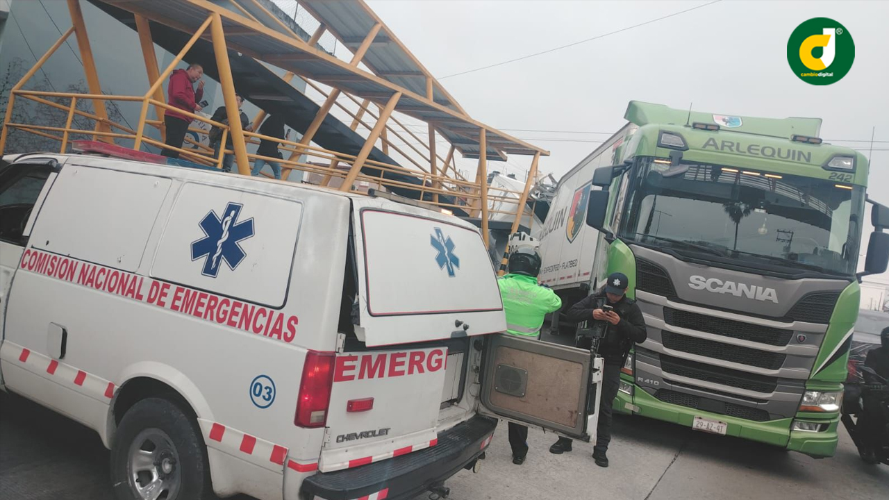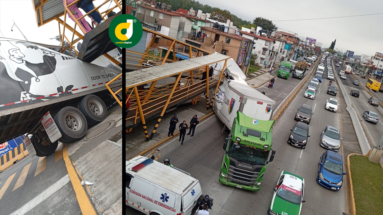 El tractocamión circulaba en una zona escolar, fuera del horario permitido para los camiones de carga y terminó destrozando la unidad y dañando la parte baja de la estructura metálica.