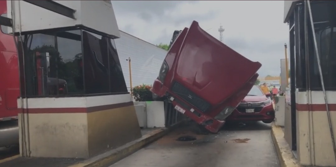 El conductor de la unidad de carga aparentemente se quedó dormido al volante e impactó la caseta de cobro y el automóvil Honda.