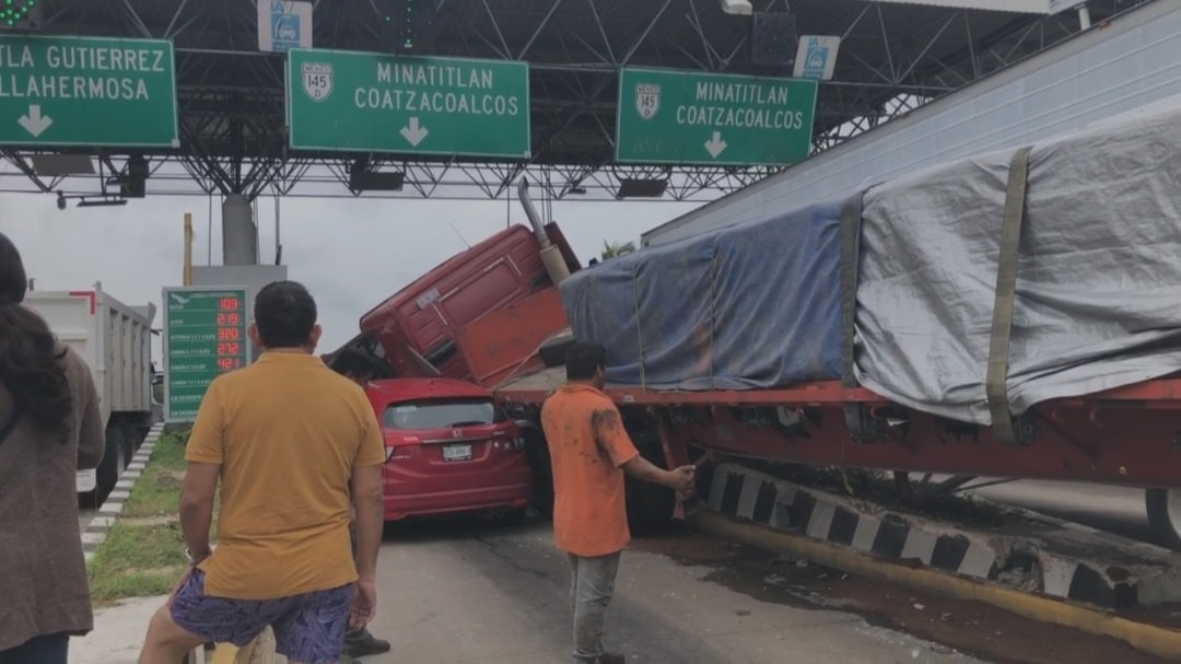 Acayucan, Ver.- Esta tarde un tráiler se impactó contra la caseta de peaje 119 de Acayucan, en la autopista La Tinaja-Cosoleacaque, al sur de Veracruz.