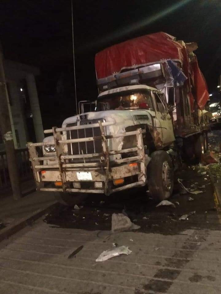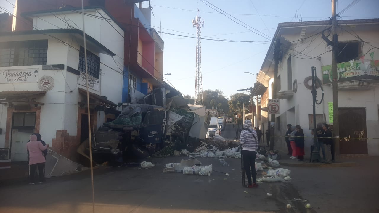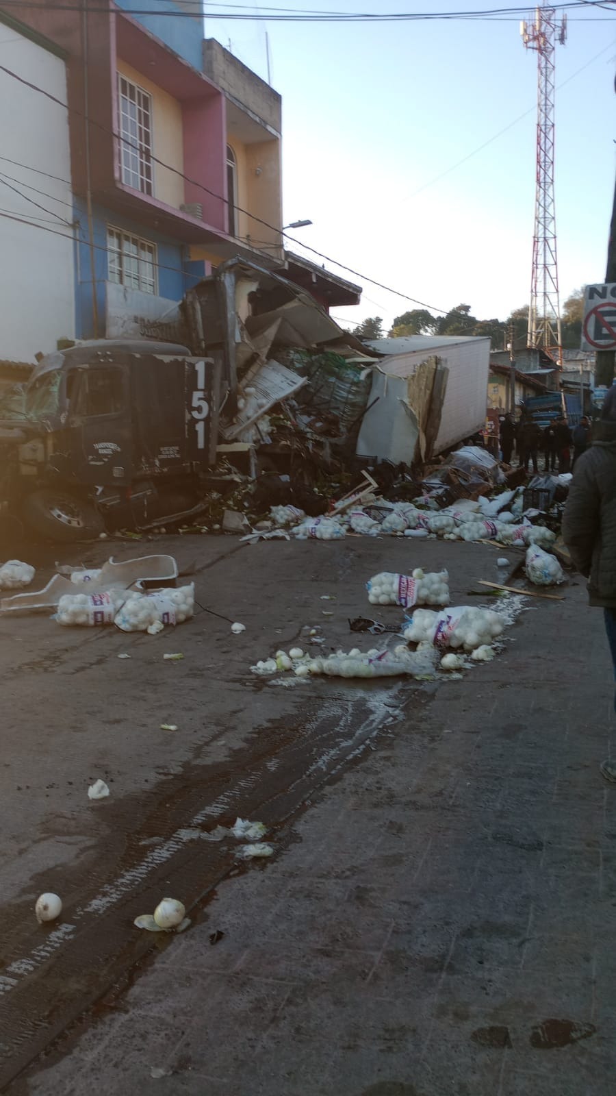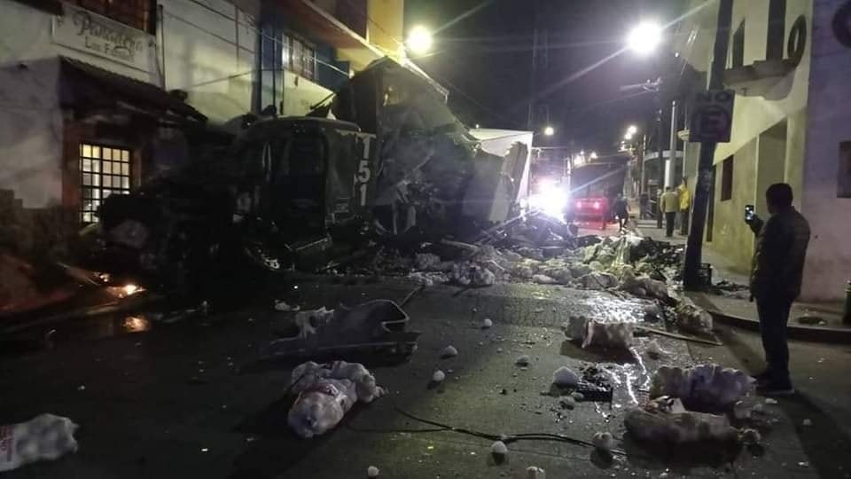 Atzalan, Ver.- Un tráiler cargado con vegetales impactó dos vehículos y tres viviendas en Atzalan; presuntamente se quedó sin frenos.
