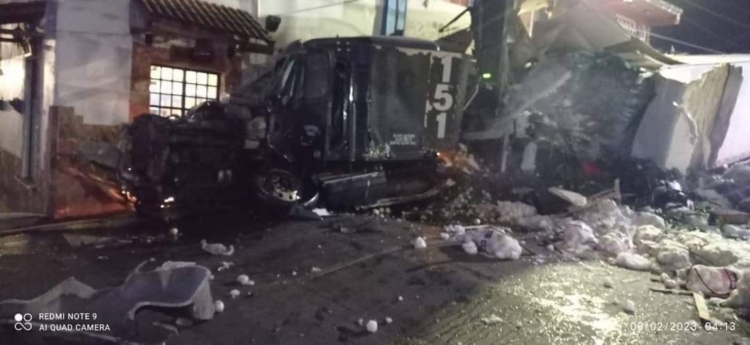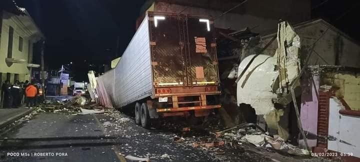 El tráiler se habría quedado sin frenos, impactando a un camión tipo torton, un vehículo particular y tres viviendas.